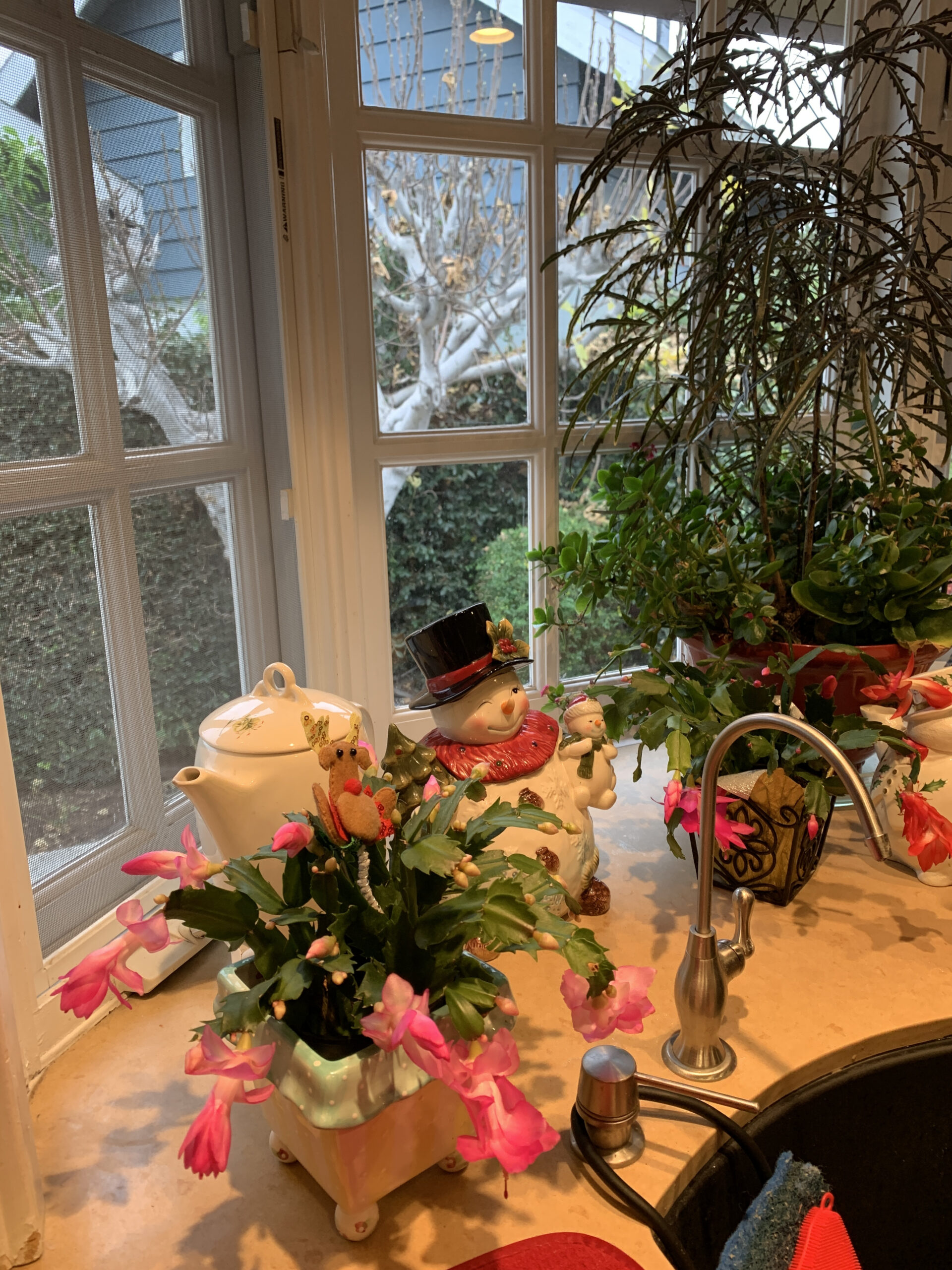 Last December I received two beautiful Christmas cactus plants. I placed them in the kitchen bay window. Much to my surprise, they produced beautiful blooms. Even though these plants are said to bloom once a year around Christmas, this was the first time they have bloomed. By the first week of December I noticed an abundance of white bulbs. This is another sign of hope because God’s beauty is being restored. I smile while doing my dishes and take in the rich colors of the pink and and white blooms. The other Christmas Cactus displays more Christmassy colors of deep reds. I’m amazed at the hand of the Creator and how He can bring joy in this time of distress.