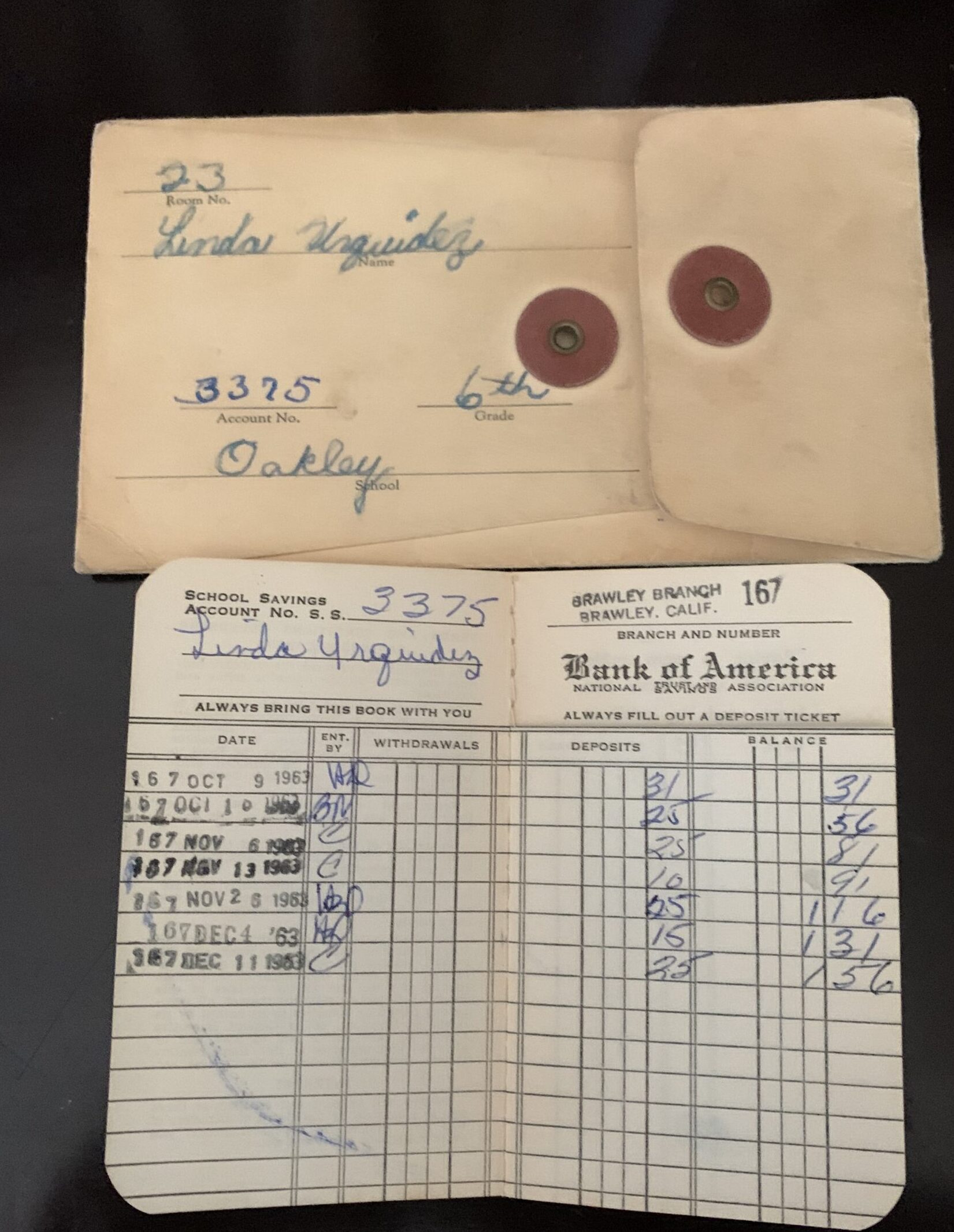 J.W. Oakley School had a program to introduce us to banking. I came across my old school savings account booklet, and, as you can see, I was a big saver! To this day I still bank with Bank of America.