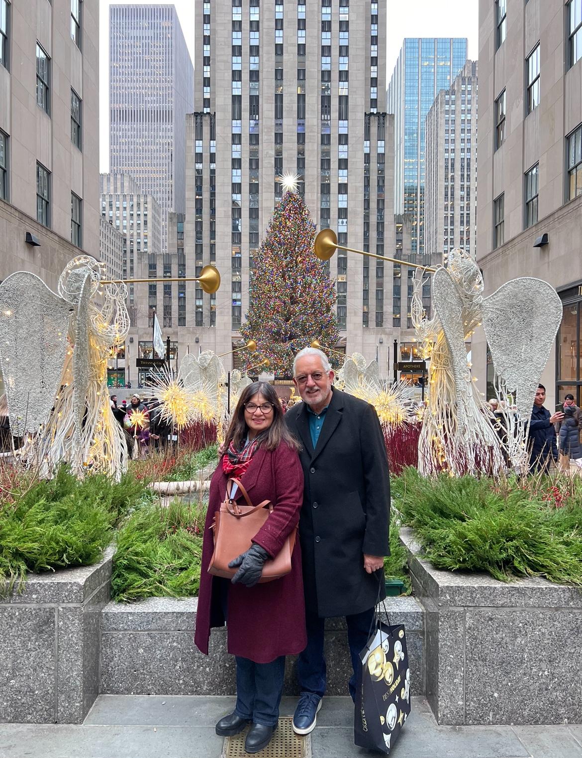 We took our annual trip to New York and Connecticut with our friends Larry and Helen. Whenever we’re in the Big Apple we always visit St. Patrick’s Cathedral. We prayed, lit candles, then walked over to Rockefeller Square to pose in front of the Christmas tree.