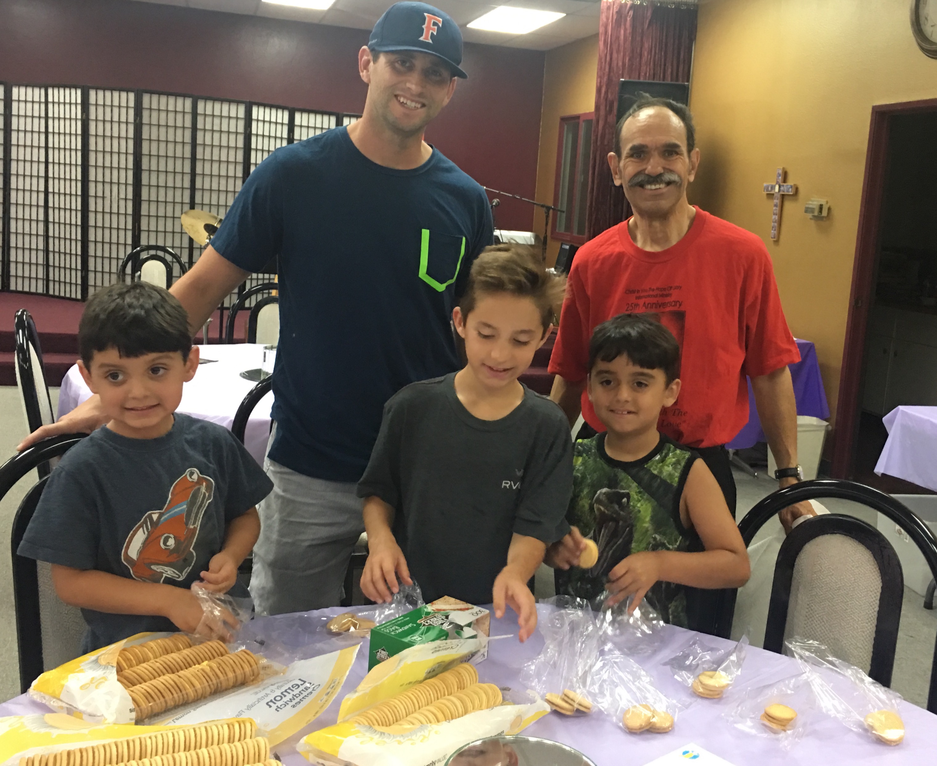 We had our ministry to the homeless this past Saturday. All went well on Friday with the production of the sandwich making. My grandsons helped with packing cookies for the homeless. William kept us entertained with his jokes like “Your mother is so ugly that she made a blind kid cry.”  Mike picked up the boys but Russ stayed the entire time to make and pack the lunches.