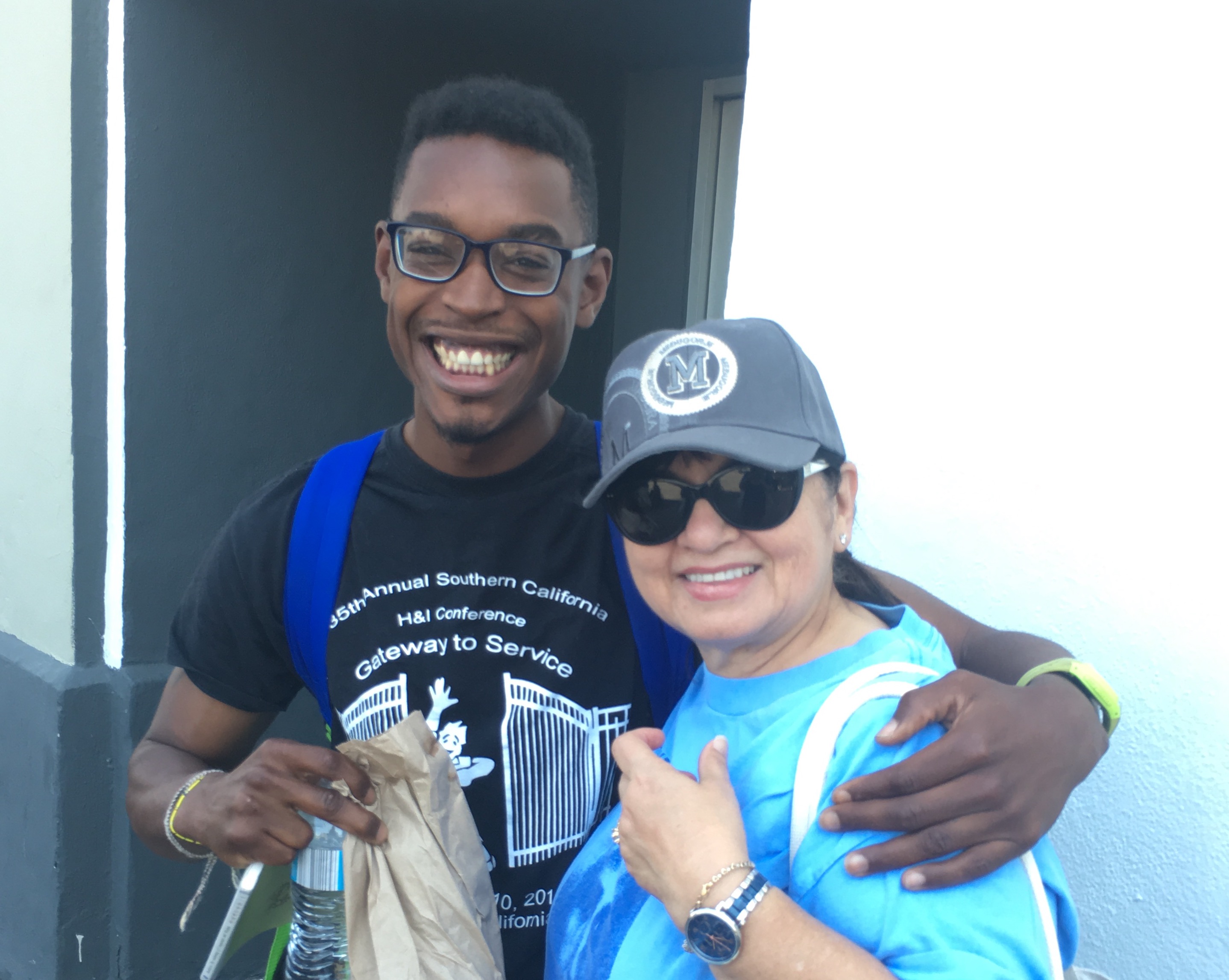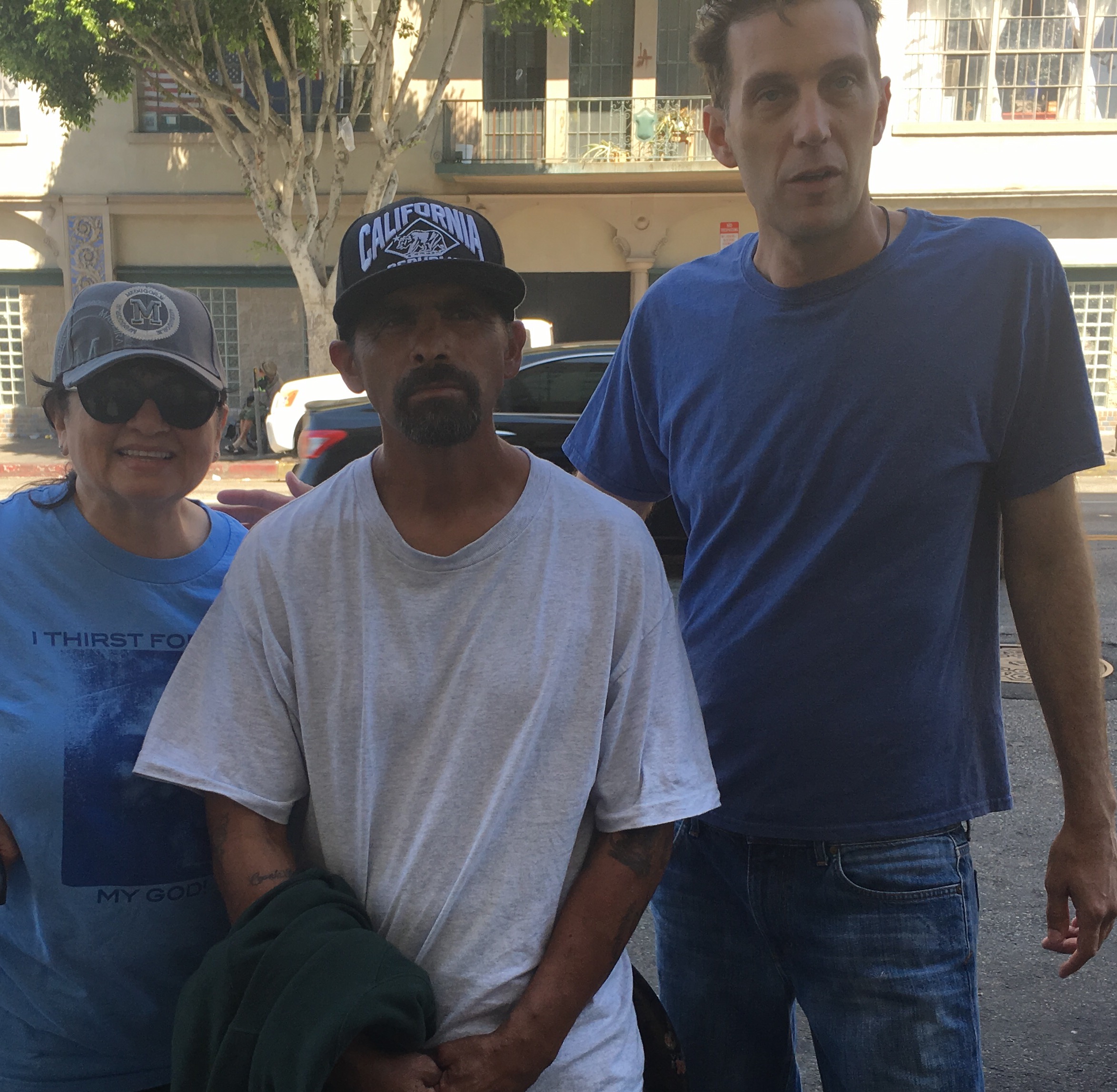 We met two Johnnys, Johnny #1 was so precious and loving, and I know that he is just transitioning and will not be on Skid Row for long. Johnny #2 was different, I talked to him and asked him how he ended up on Skid Row. He answered, “Do you want to know the truth?” “Yes,” I told him, and he said that the was selling drugs. I asked him how that was going. He said that he was just existing. I asked him if he wanted to live rather than just exist. I prayed for him and learned that both of his parents were deceased. He said he was all alone. I told him that God is his father and that Mary was his mother. We prayed for him to be delivered of his addictions. Johnny #2 humbly received the prayer.