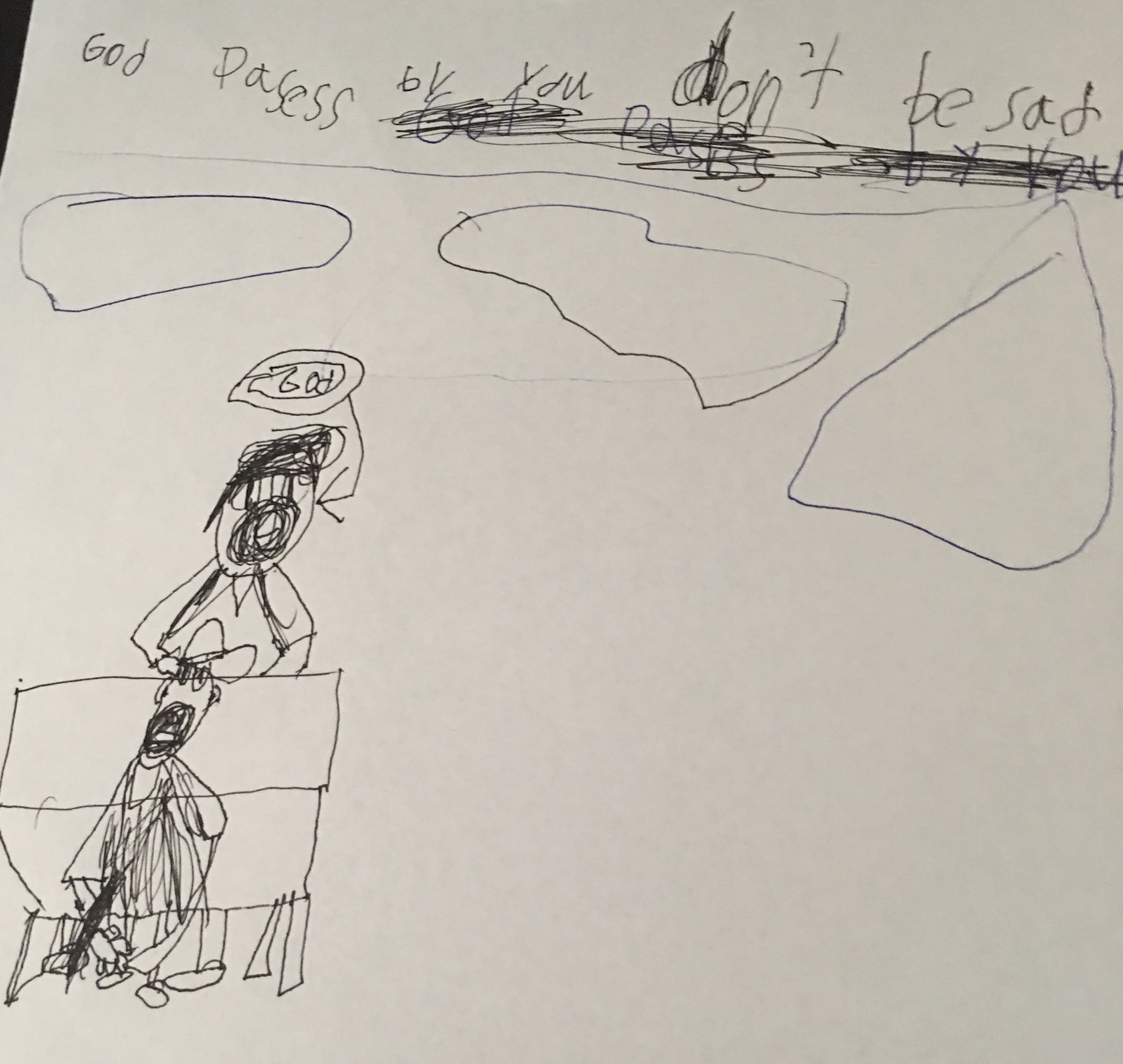 Lucas’s drawing: God passes by you don’t be sad