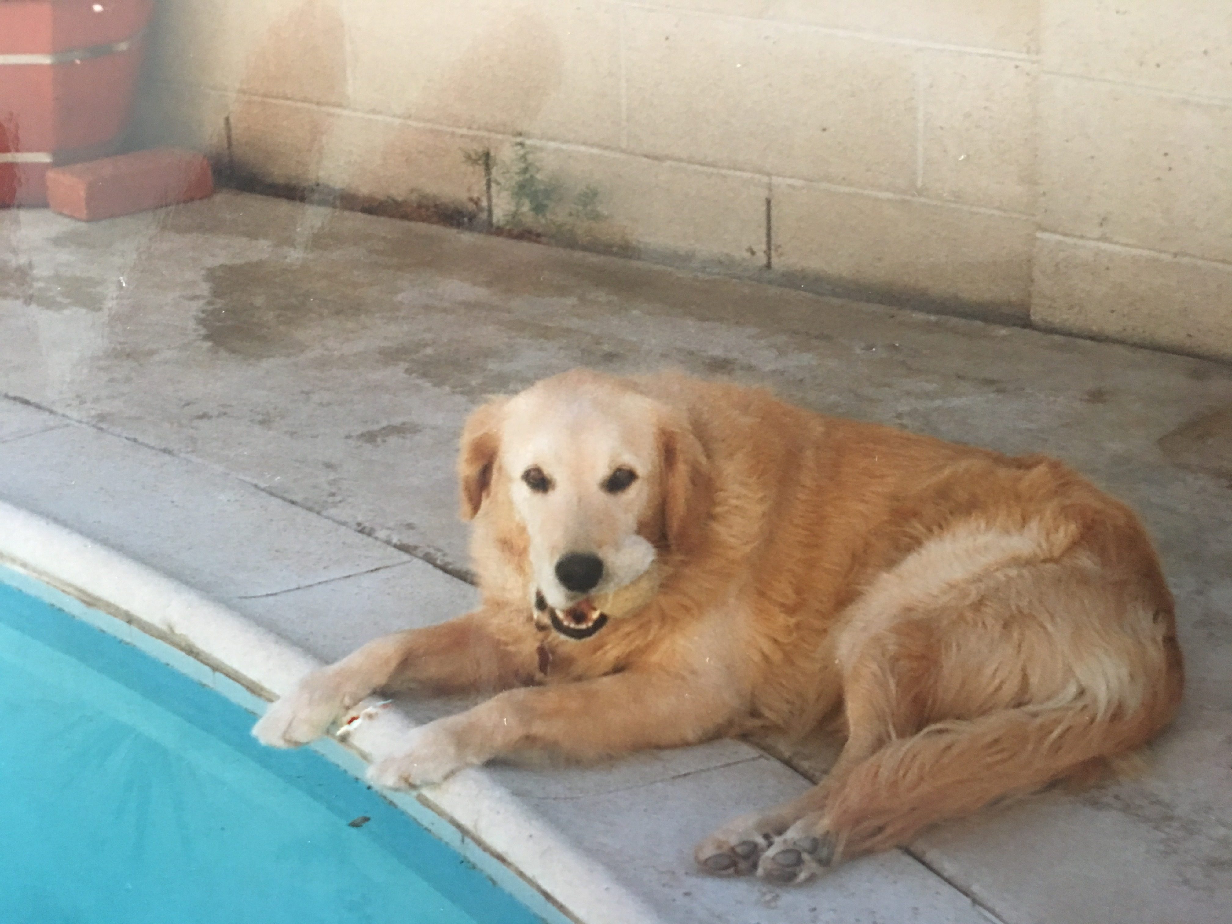 Towards the end of his life, Solo went blind and deaf, which posed an even greater problem, landing him in the pool. I would hear my son Mikos yell out from his room “Solo fell in the pool!” That was my signal to run from wherever I was to rescue the deaf and blind dog from drowning. With all the accidental falls in the pool, Solo developed chronic ear infections and he was finally laid to rest by Deanna, our babysitter.
