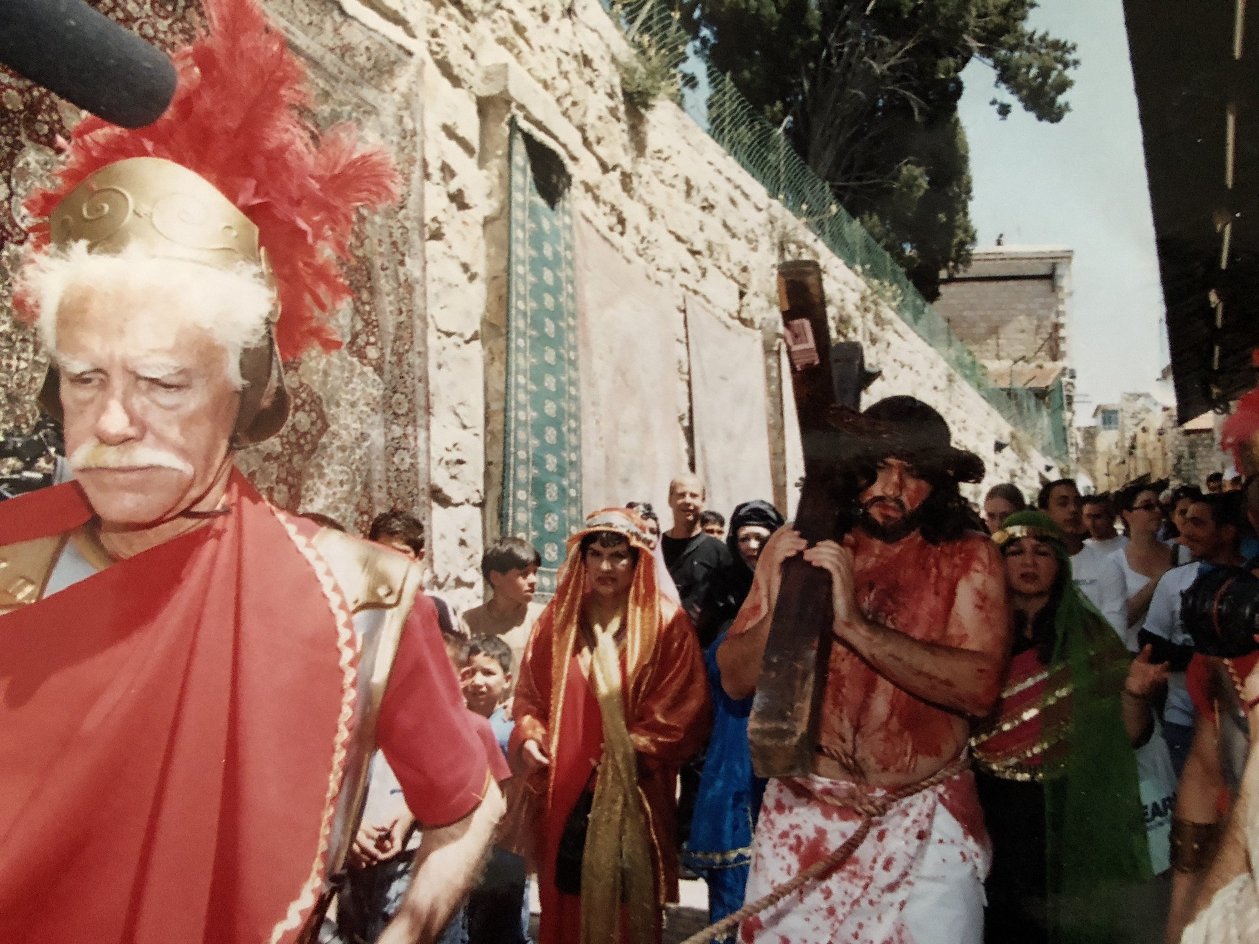 By the time the bus arrived to take us to the Via Dolorosa, I was exhausted. I applied the fake Kool-aid on Joseph, a man from Croatia who was playing the part of Jesus. Joanne was so upset because the took on the color of pink with red. We did our best and saved the day, because we came to do our work for the Lord and nothing was going to hinder our calling.