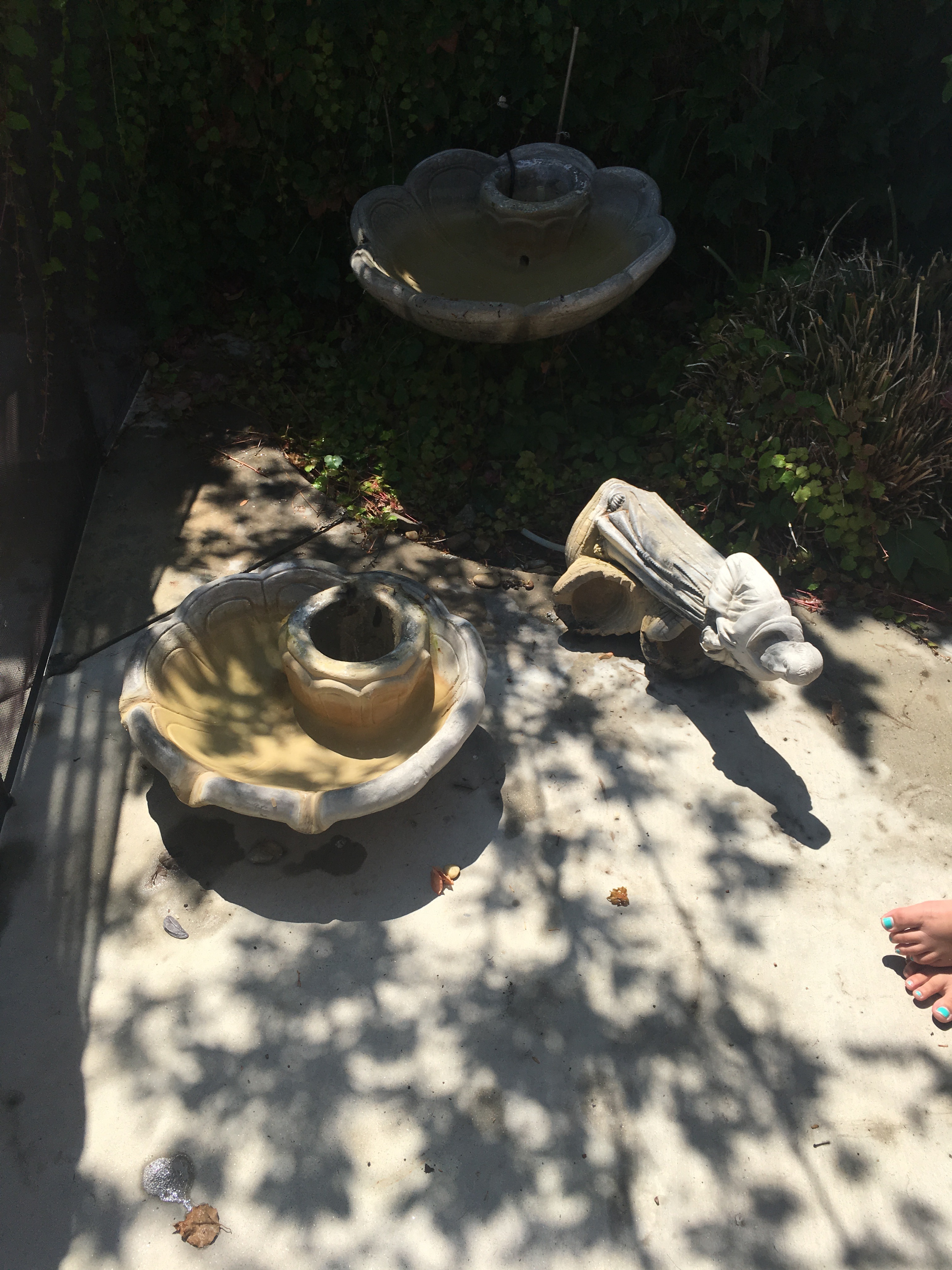 We waited several days to tell Papa about the fountain, as the kids were terrified to face Mike. I can’t blame them, because Mike gets upset about half-full bottles of water all over the house and is always yelling, “Is anyone watching those kids?” It is never a good time to break bad news but I had to tell Mike. He was his usual self, at first a little angry, then he thanked me for telling him.