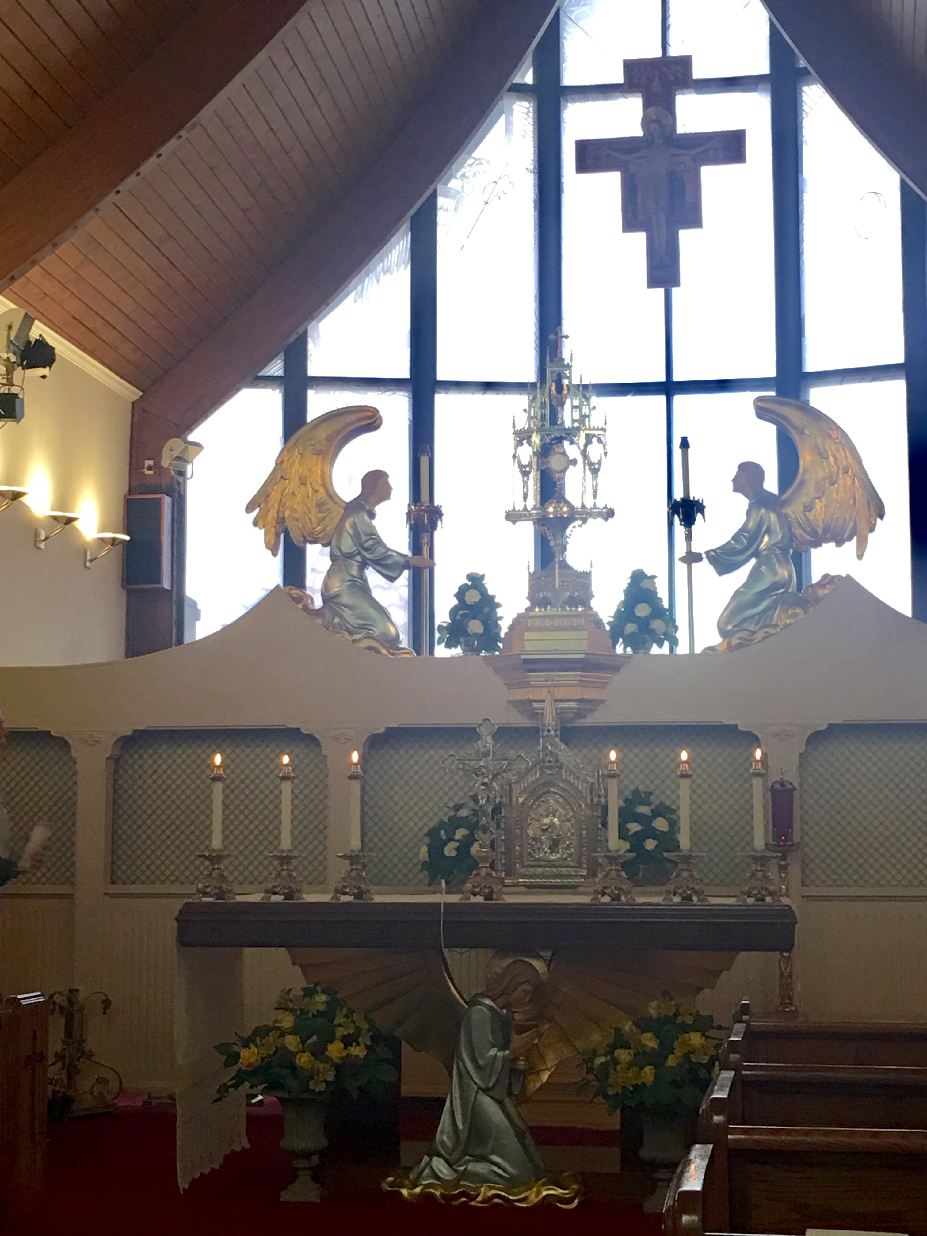 After Mass, Father Leonard and Father Anthony and I went to lunch at a local eatery. I was double blessed to be in the company of such fun holy men. Once we returned to EWTN, Father Leonard took me on a private tour of the Global network. As we were going through the tour I kept seeing the same people that attended Mass earlier that day. It is not a requirement for the employees of EWTN to attend Mass, but many of the 300 employees were there.